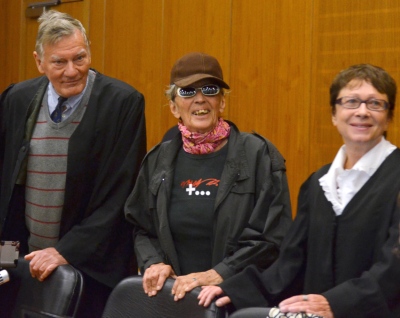 FRANKFURT, GERMANY – SEPTEMBER 21: Sonja Suder (C), 79, arrives for the first day of her trial, charged in relation to the 1975 OPEC attack in Vienna on September 21, 2012 in Frankfurt, Germany. Prosecutors accuse Suder and Christian Gauger, 71, of having been members of the Revolutionary Cells (RZ) left -wing terrorist group and accuse Suder of supplying weapons and explosives to terrorists led by Ilich Ramirez Sanchez, also known as Carlos the Jackal, who in December, 1975 stormed the headquarters of OPEC and took over 60 hostages, including many OPEC member states oil ministers. Three people were killed in the attack. Gauger and Suder had fled Germany, were arrested in France in 2011 and extradited to Germany to face trial. (Photo by Bernd Kammerer – Pool/Getty Images)