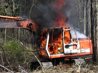 Komunikat sprawców: „Około 2 tygodnie temu spaliliśmy koparkę, stojącą w miejscu, gdzie robotnicy niszczą park Izmaiłowski. Pojazd był zaparkowany na poboczu autostrady, gdzie dodawali oni kolejne pasy ruchu drogowego. Załatwienie tej sprawy zajęło nam 3-4 minuty. Zbliżyliśmy się do celu. Bez pośpiechu umieściliśmy nasz pakunek szmat (w miejscu pomiędzy kabiną,silnikiem, a hudrauliką ramienia) Do tego trochę benzyny, którą zapaliliśmy. Szybka ucieczka na drugą stronę ulicy, po czym popijając piwo, które mieliśmy w torbie, udaliśmy się