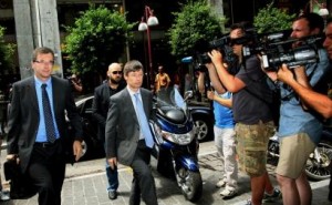 (Na zdjęciu członkowie trojki wkraczają do ministerstwa finansów)