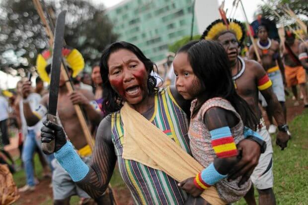 Na zdjęciu: brazylijscy Indianie protestujący przeciw zawłaszczaniu ich ziem przez korporacje.