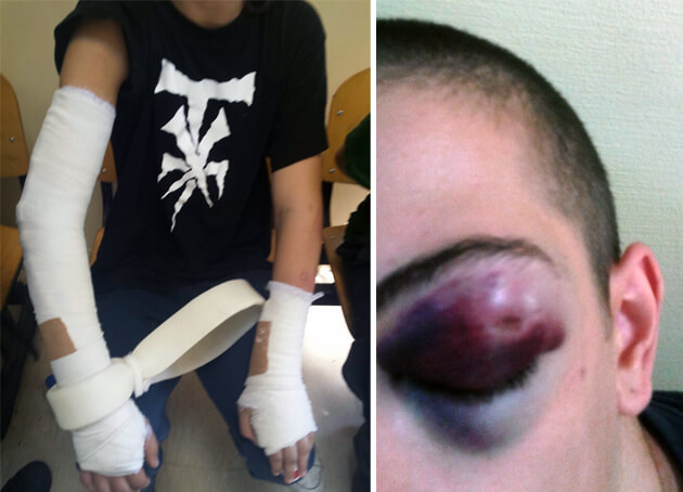 Gliniarze aresztowali i brutalnie pobili 9 osób podejrzanych o ten atak, w tym 6 nieletnich. Poniżej zdjęcie 13-latka z połamanymi przez gliniarzy rękoma, oraz 17-latka z podbitym okiem. Więcej zdjęć tutaj