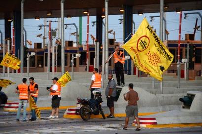Grupa około 30 osób, członków ruchu „Nie płacę za przejazd”, zgromadziła się w punkcie pobierania opłat drogowych znajdującym sie w miejscowości Elefsina, podnosząc do góry wszystkie szlabany. Umożliwiło to darmowy przejazd sporej liczbie kierowców. Wymachując transparentami oraz rozdając ulotki, protestowali przeciwko wysokim kosztom przejazdu przez krajowe autostrady.