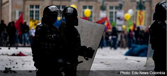 Pokojowa demonstracja studentów w stolicy kraju Bogocie została brutalnie zdławiona przez jednostkę policji o nazwie Escuadrón Móvil Antidisturbios, która jest odpowiednikiem polskiego ZOMO z czasów PRL. Studenci demonstrowali przeciwko planom „urynkowienia” edukacji wyższej przez rząd prawicowego prezydenta Juana Manuela Santosa.