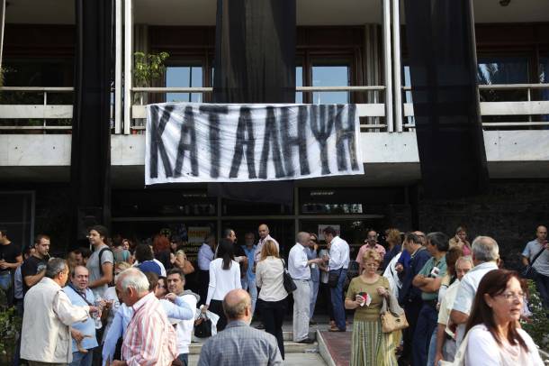 Dzisiaj, przedstawiciele Trojki (KE, EBC, MFW) znów odwiedzili Grecję, tym razem, żeby spotkać się z ministrem gospodarki. Przywitały ich trwające od godzin porannych okupacje, prowadzone przez pracowników różnych ministerstw, protestujących przeciwko cięciu płac i zmniejszaniu „rezerwy siły roboczej”.