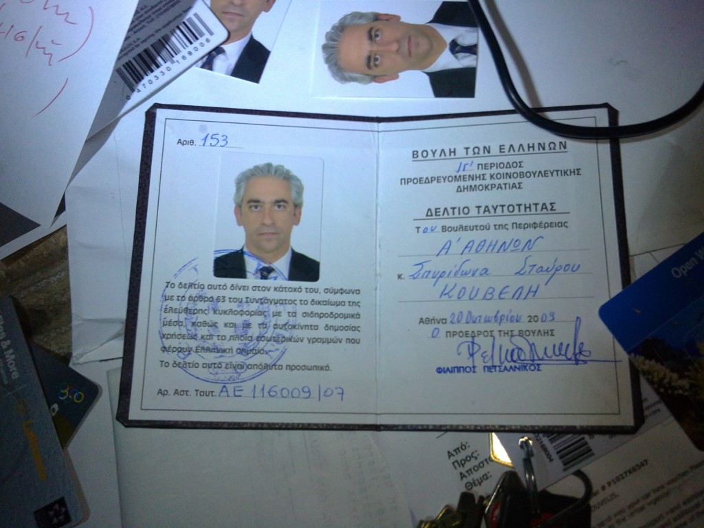 Nocą 23 listopada, wyśledziliśmy parlamentarzystę rządzącej partii PASOK. Wsiadał właśnie do, prawdopodobnie swojego, luksusowego Lexusa. Ani chwile się nie wahając, postanowiliśmy go zaatakować. Pobiliśmy go a następnie obrabowaliśmy, robiąc w ten sposób dokładnie to samo co politycy robią z nami. W torbie, którą mu skonfiskowaliśmy były: laptop, dokumenty PASOK, kosztowne pióra, karty kredytowe o łącznej zawartości 90 000 euro (!!!) oraz poselski dokument identyfikacyjny. Zaskoczył nas również fakt, że torba pełna była prezerwatyw. Do czego one były potrzebne temu staremu świntuchowi??