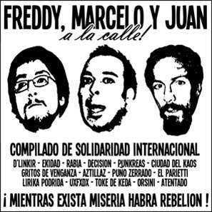 Otrzymaliśmy informację, że w ramach karzącej sankcji, nasi towarzysze zostali umieszczeni w Skrzydle o Zaostrzonym Rygorze. Na ich pokojowy strajk głodowy, bezmyślne władze więzienne odpowiedziały typową dla siebie brutalnością. Przekazujemy też globalnej społeczności wszystkich solidaryzujących się, że śledztwo trójki towarzyszy, włączone przez burżuazyjne chilijskie państwo do tzw. Sprawy Bezpieczeństwa (Security Case) zostało zamknięte 10 lutego w Santiago. Biuro prokuratora ma teraz 10 dni na sformułowanie swoich zarzutów, wraz z całością materiału dowodowego. Juan Aliste, Freddy Fuentevilla i Marcelo Villarroel pragną by podać te informacje do publicznej wiadomości, aby umożliwić przygotowanie i aktywizację sieci solidarnościowej, która powinna ulec wzmocnieniu podczas tej nowej fazy całego procesu sądowego, która stanie się nową przestrzenią ich walki o wolność. Wszyscy trzej oskarżeni są o napaść na bank i zabicie karabiniera.