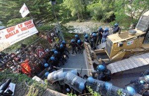 Kilka metrów wyżej zaczęła się wyraźnie odznaczać granica, która jeszcze kilka godzin wcześniej nie istniała. Po jednej stronie znajdowali się żołnierze strzegący placu budowy kolei, z drugiej zaś obozowisko rozbite przez mieszkańców doliny, protestujących przeciwko rozpoczęciu prac budowlanych oraz zdeterminowanych do obrony tego terenu. O podjęcie budowy w Val di Susa przez 20 lat walczył rząd. Niezależnie od tego jaka partia aktualnie rządziła, uważano, że ten teren jest punktem strategicznym pod względem komunikacji Włoch z resztą Europy. Nowa linia ekspresowa to projekt niebagatelny, a jego wpływ na środowisko naturalne byłby ogromny: 50 kilometrów tuneli do wydrążenia pod Alpami, w celu umożliwienia połączenia Val di Susa z Saint-Jean de Maurienne. Przez 20 lat instytucje polityczne wydawały oświadczenia, niosąc się z zamiarem budowy kolei, przez 20 lat toczono walkę przeciwko zamiarom rządu, jednak była to walka demokratyczna, ponad podziałami partyjnymi. Dzisiaj ta walka przybrała zupełnie inną formę.