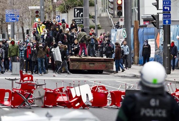 Różne grupy, w tym strajkujący studenci, zakłóciły przebieg targów pracy o nazwie Plan Nord, wywołując następnie zamieszki w centrum miasta. W wielu miejscach trwały intensywne starcia z policją. Tłum niszczył sklepowe wystawy, a także pozbawił okien Montrealskie centrum handu (Montreal World Trade Center) oraz budynek grupy medialnej Quebecor. Zniszczono również kilkanaście radiowozów.