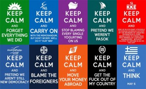 Obawa przed konfrontacją sprawiła, że zarówno socjalistyczny PASOK, jak i konserwatywna Nowa Demokracja – dwie największe partie, powszechnie obwiniane przez społeczeństwo greckie za kryzys finansowy – w swojej kampanii wyborczej bardziej skupiły się na kameralnych spotkaniach w niewielkich salach, lub wręcz na wizytach domowych.