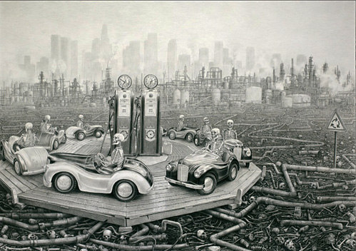 Wokół grasują firmy ochroniarskie, prywatne armie zasilane przez proletariuszy zniewolonych na ciele i umyśle. „Kiedy nadejdą inwestorzy będziemy się raczyć chlebem” popiskują mali człeczkowie, warujący jak wierne psy w oczekiwaniu na okruszki strącone przez szefa. Wśród tych „niezbędnych reform”, jedyną posiadającą dla nich znaczenie jest prywatyzacja. Wyprzedaż wszelkich państwowych oraz społecznych struktur.