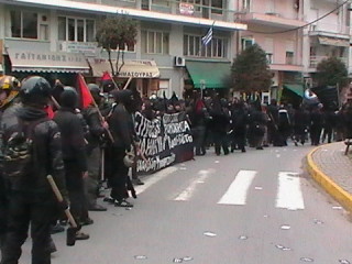 Informacje, nagranie i zdjęcia z anarcho-antyfaszystowskiego dema, zorganizowanego w solidarności z „czwórką z Kozani”. W sobotę 23 lutego miało miejsce solidarnościowe demo z czwórką partyzantów, aresztowanych po podwójnym rabunku w Velvendo (Kozani). Na wezwanie odpowiedziało wiele anarchistycznych grup z całej Grecji. Około 400 osób wzięło udział w ważnym i nieoczekiwanym zgromadzeniu w Veria. Demonstracja była bardzo dynamiczna. Rozrzucono podczas niej 20.000 ulotek, rozklejano plakaty i naklejki, oraz rozdawano broszury. Ilość gliniarzy obecnych na demonstracji była w stosunku