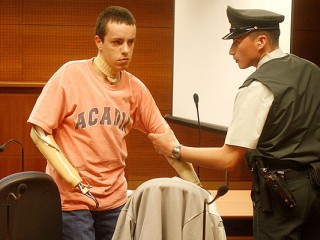 Luciano „Tortuga” Pitronello, ranny podczas akcji towarzysz, zmuszony jest do kolejnego stawienia się przed sądem w dniu 22 listopada 2011. Sprawa dotyczy ataku z użyciem materiałów wybuchowych na oddział banku Santander, 1 czerwca 2011 roku w Santiago. Źródło: